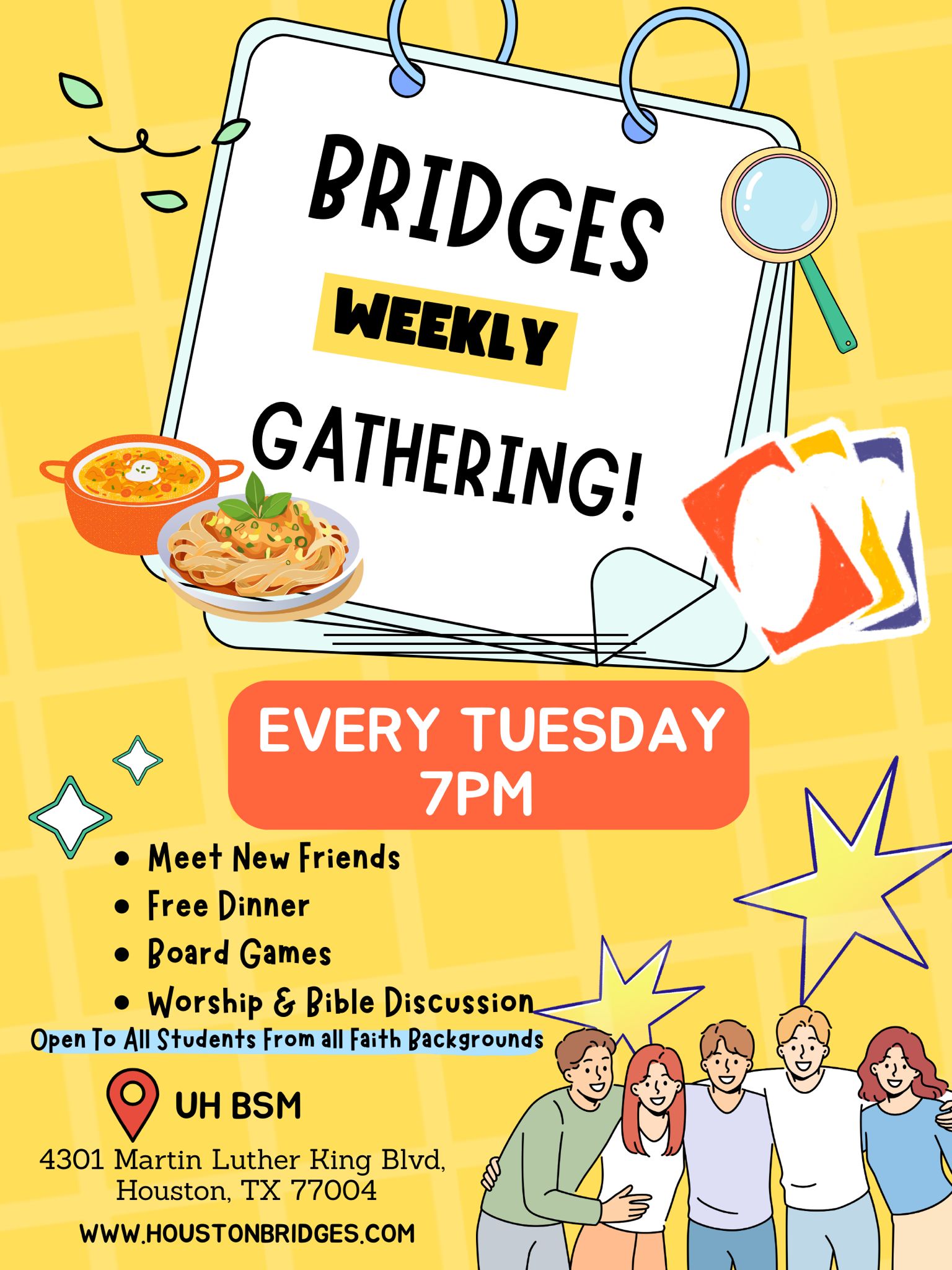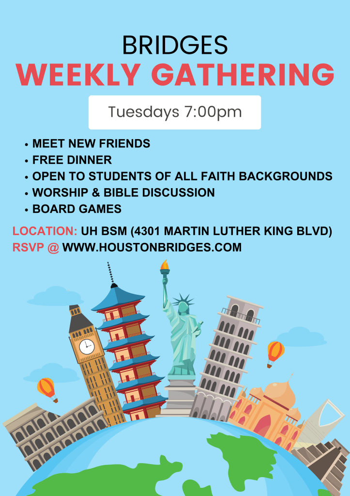 Welcome to Bridges International, a community passionate about loving and serving international students studying on campuses across Houston! While sponsored by a Christian non-profit, students of all faiths and backgrounds are welcome to join.